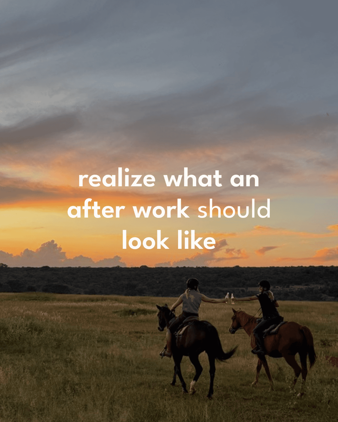 … inse hur en after work (sundowner) egentligen borde vara – på en häst, dryck i hand och solnedgången som backdrop.