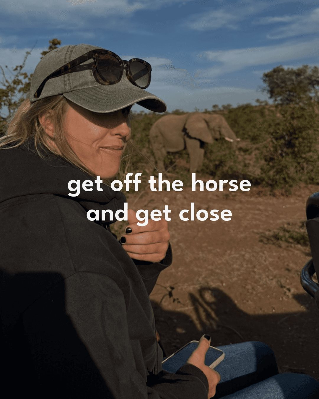 … hoppa av hästen, hoppa i game viewern och stå snok-mot-snabel med en stor elefanttjur.