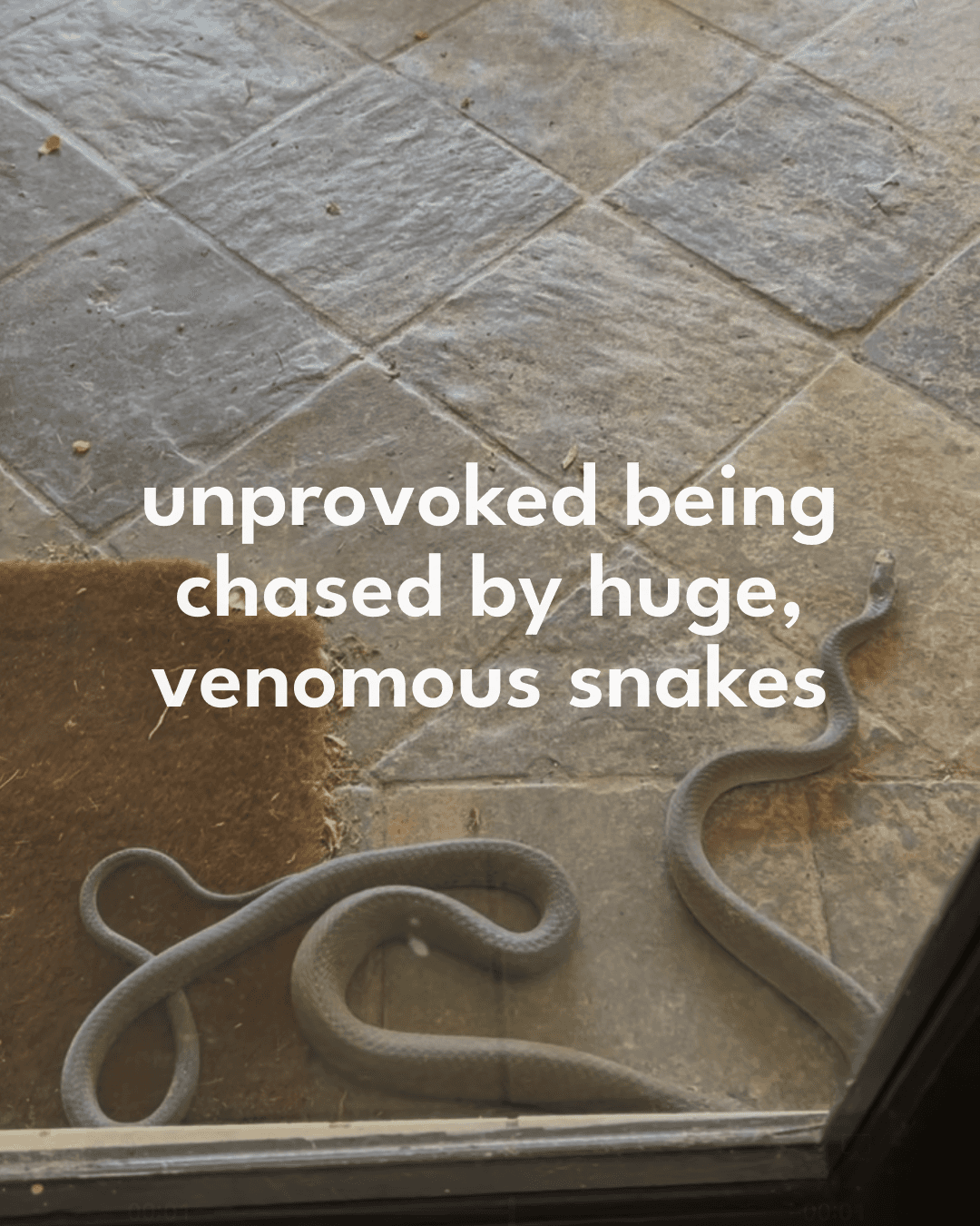 “Det finns MASSOR av giftiga ormar i Afrika. Jag ser framför mig hur de liksom kastar sig fram och JAGAR MIG!”