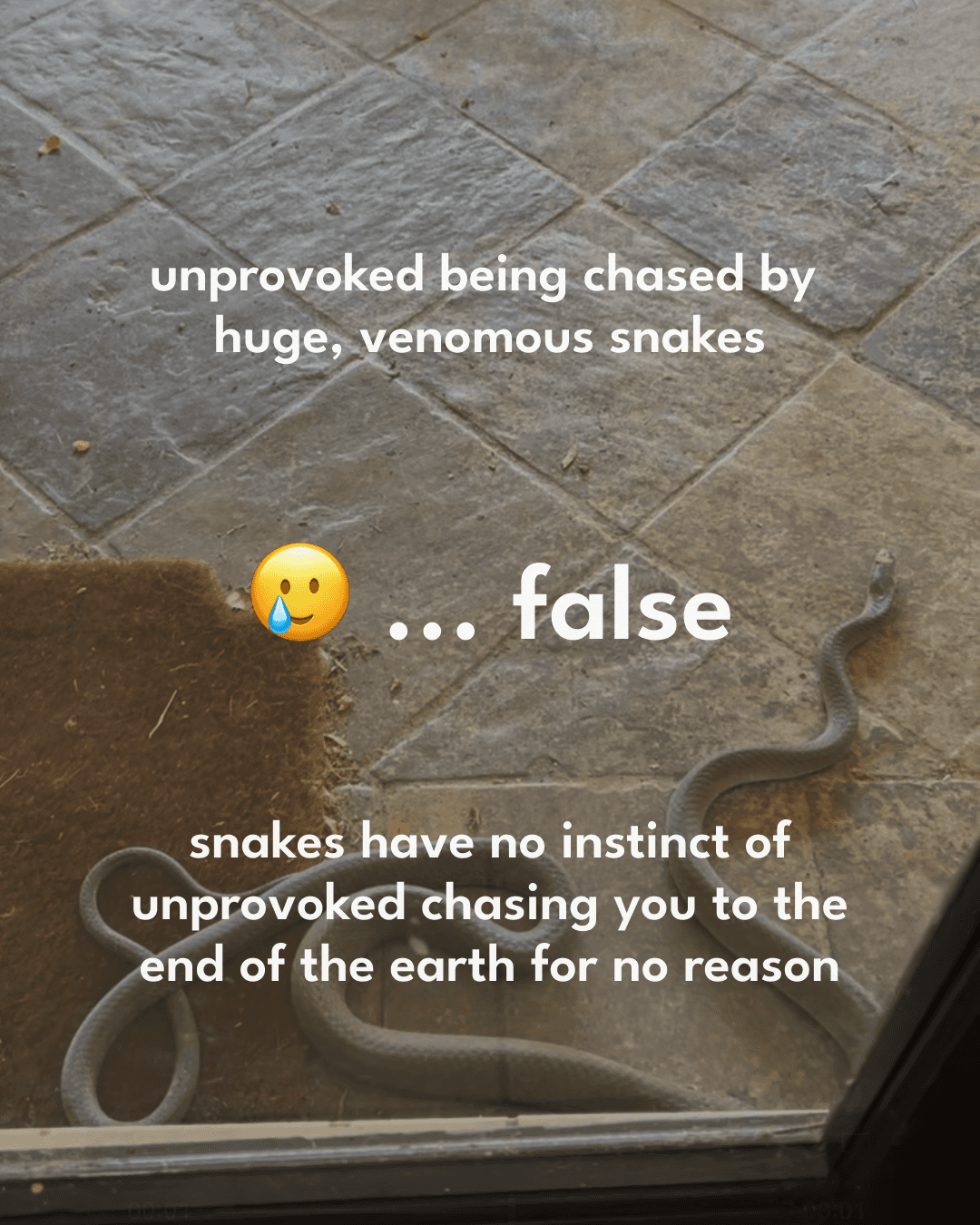 Falskt. En av mina absoluta favorit-påståenden och en fullständigt komplett lögn 😂 Naturligtvis finns det ormar i Afrika, och ja, flera av dem är giftiga.