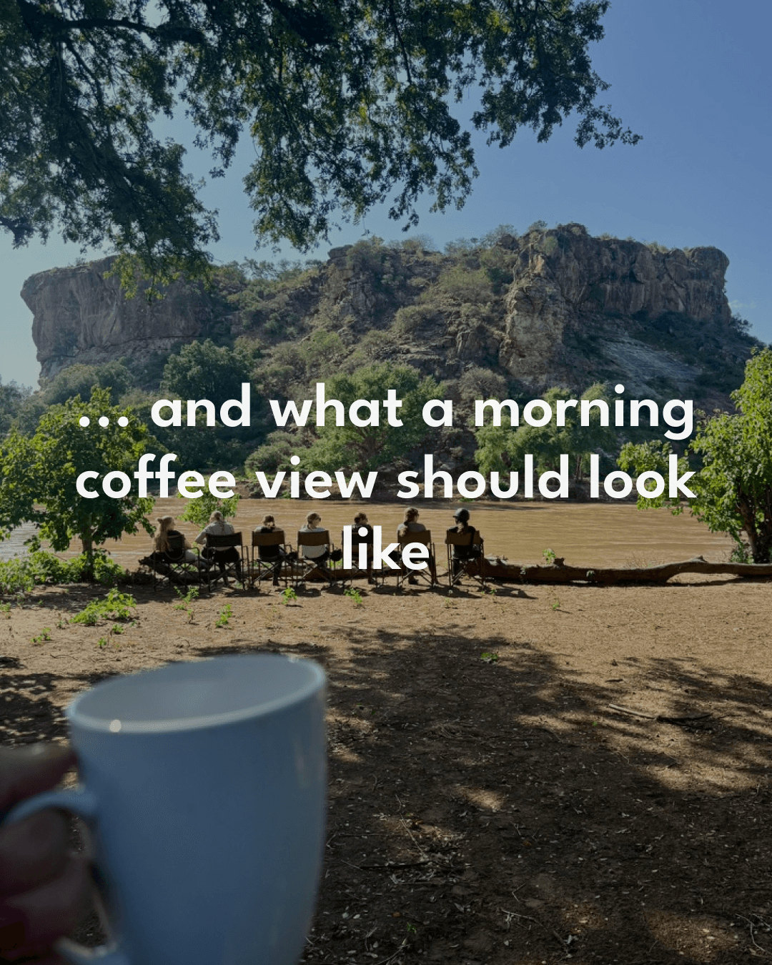 … börja morgonen och känna kaffedoften med utsikt över en flodbädd och klippvägg.