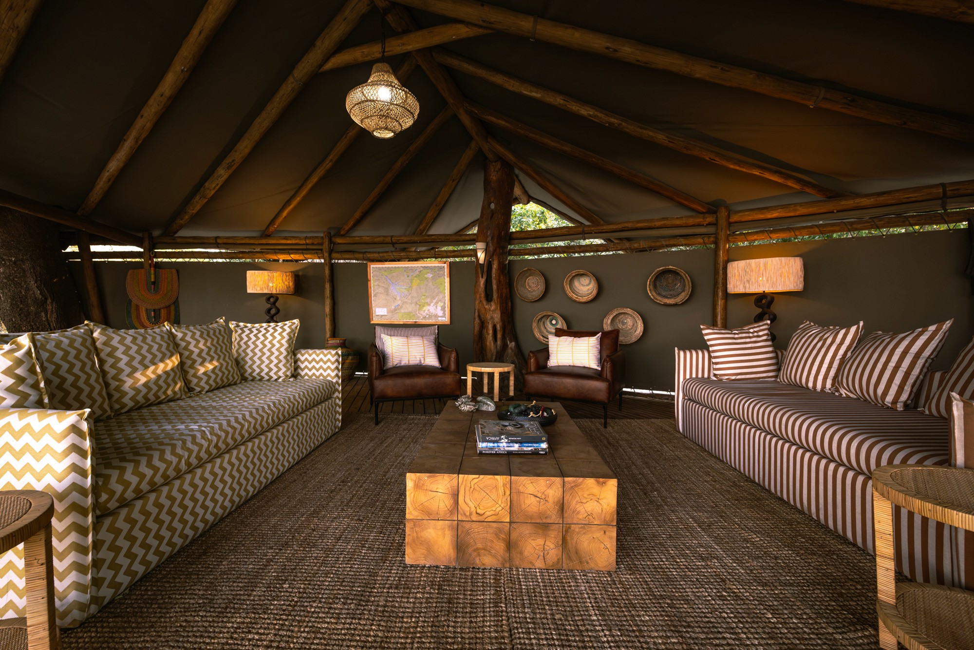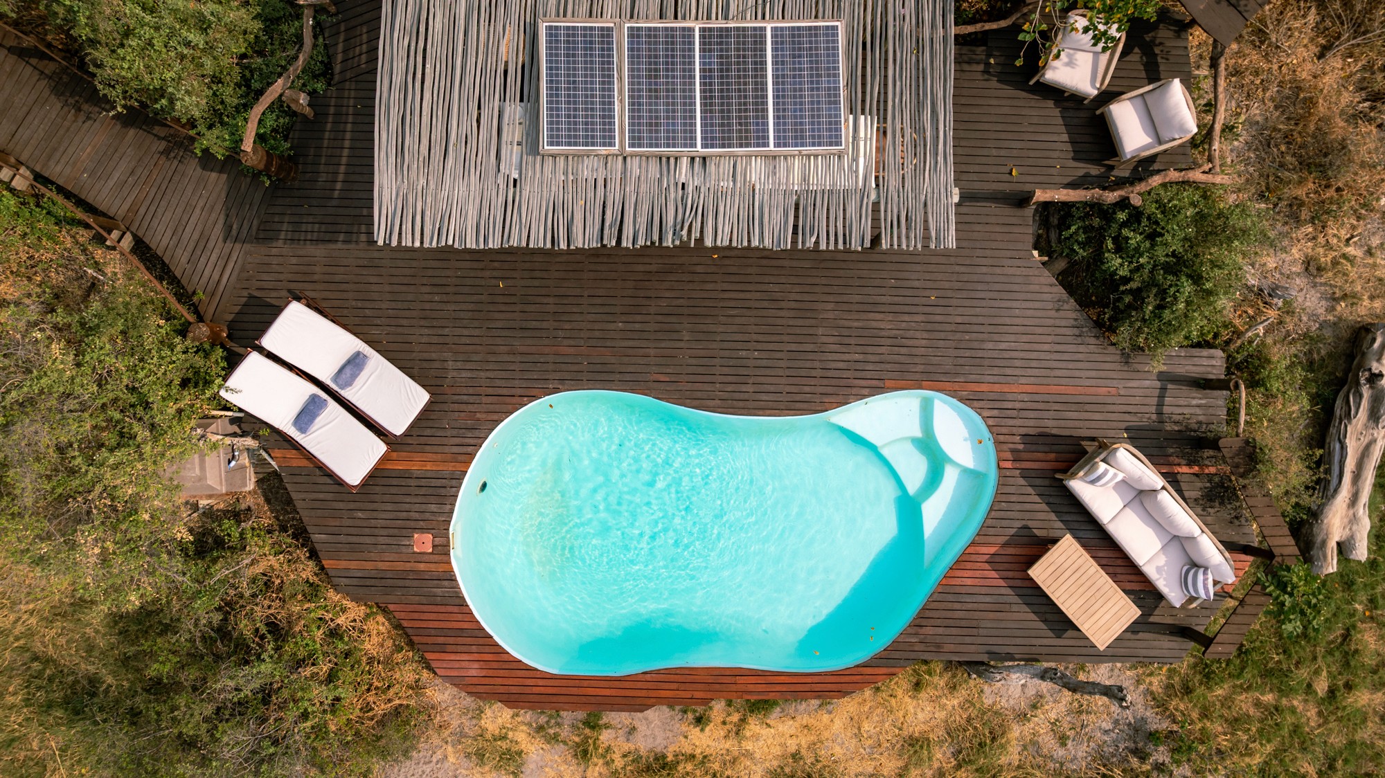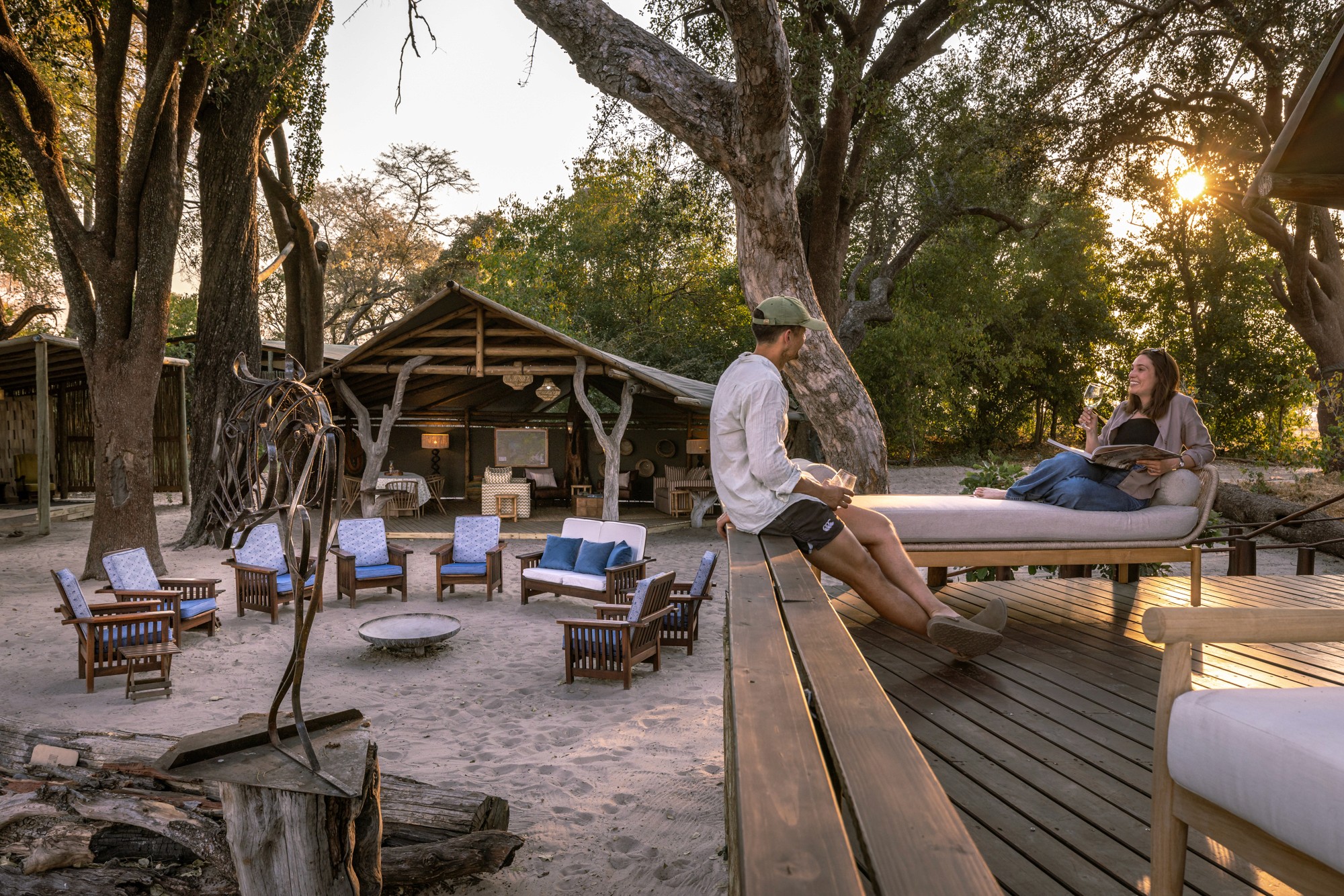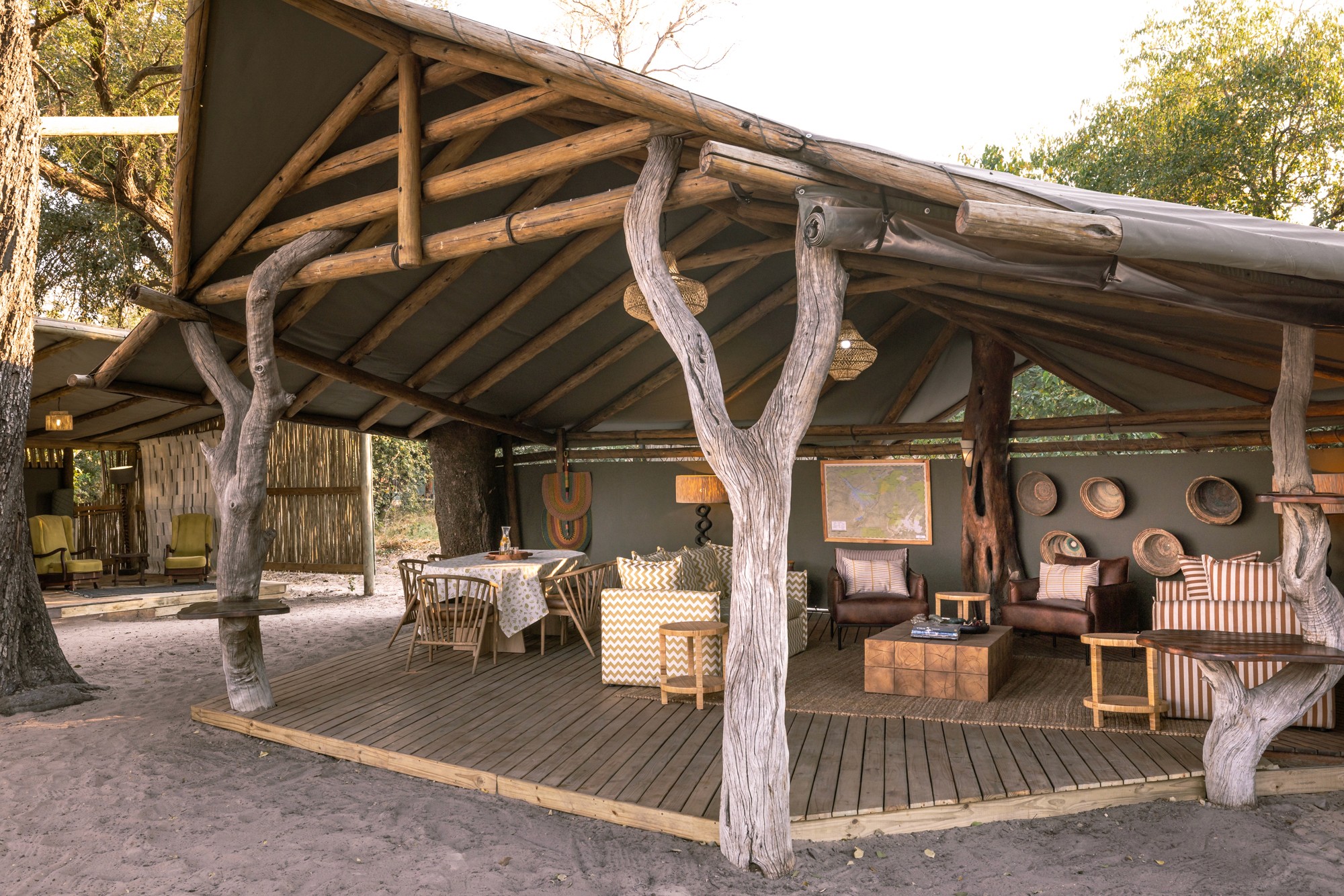 Boendet under safarin är huvudsakligen förlagt till Kujwana Camp, ett exklusivt tältcamp vackert belägen vid Xudumfloden. Här kombineras äkta bushkänsla med hög komfort – gästerna bor i rymliga tält med eget badrum, och kan njuta av pool, trädäck och wifi. Utsikten över flodslätten bjuder ofta på vilda djur av alla dess slag som passerar förbi, vilket gör att du ständigt är omgiven av naturen. På begäran kan man för ett pristillägg även boka de två rymliga Riverside Suites – Hippo Cradle eller Rocking Horse – med spektakulär utsikt över floden. På safarit erbjuds även boende ett så kallat fly camp (läs mer längre ned), för en mer avskild vildmarksupplevelse.