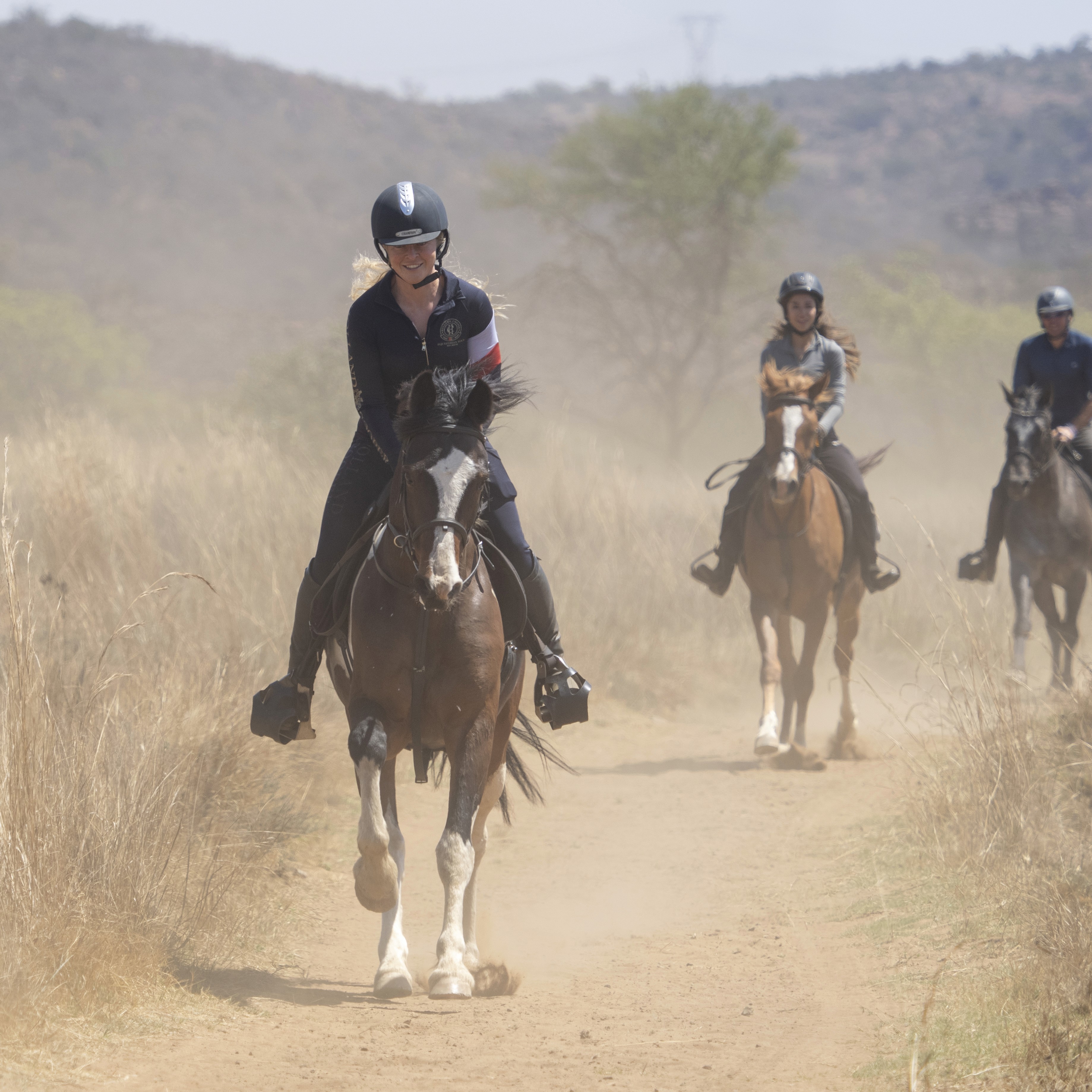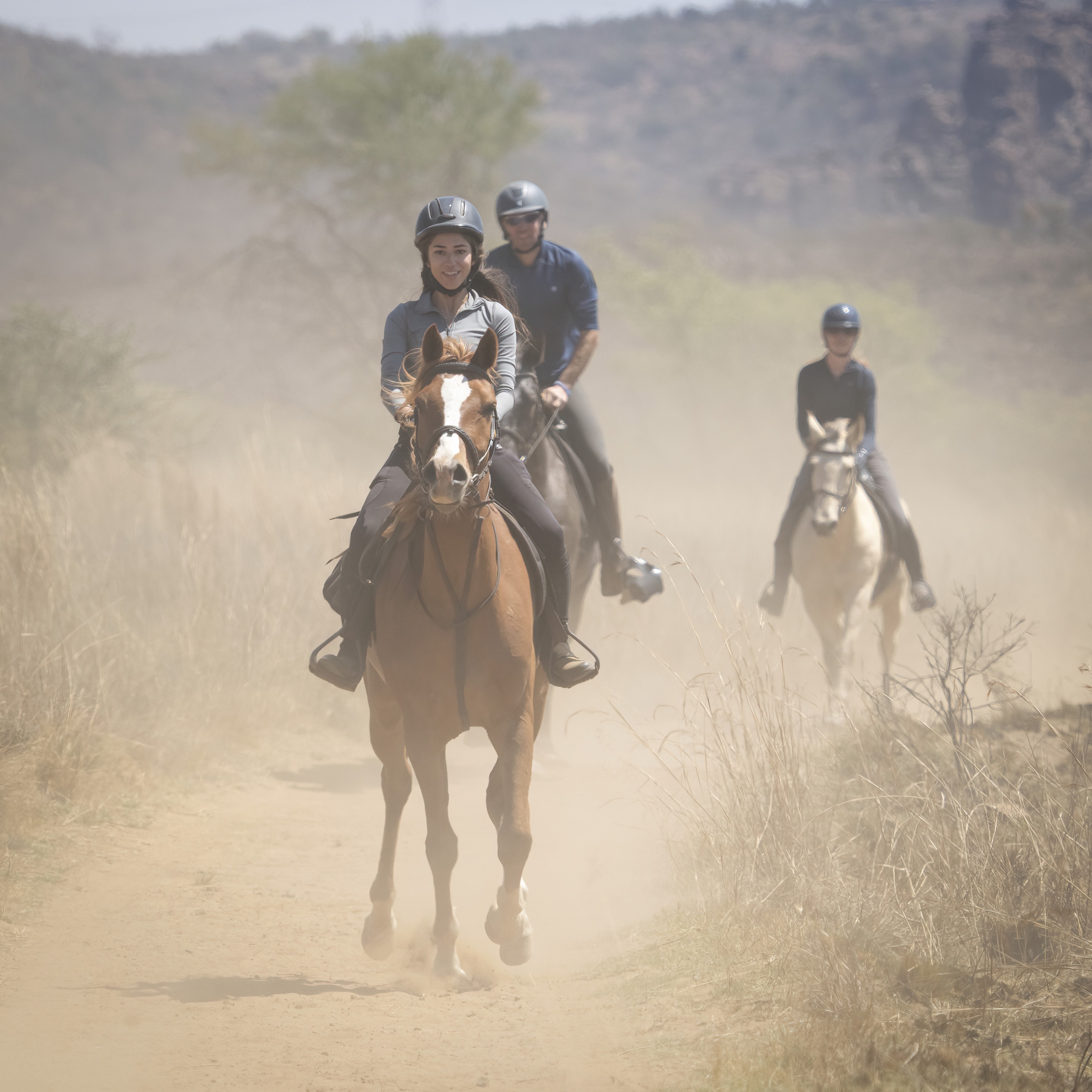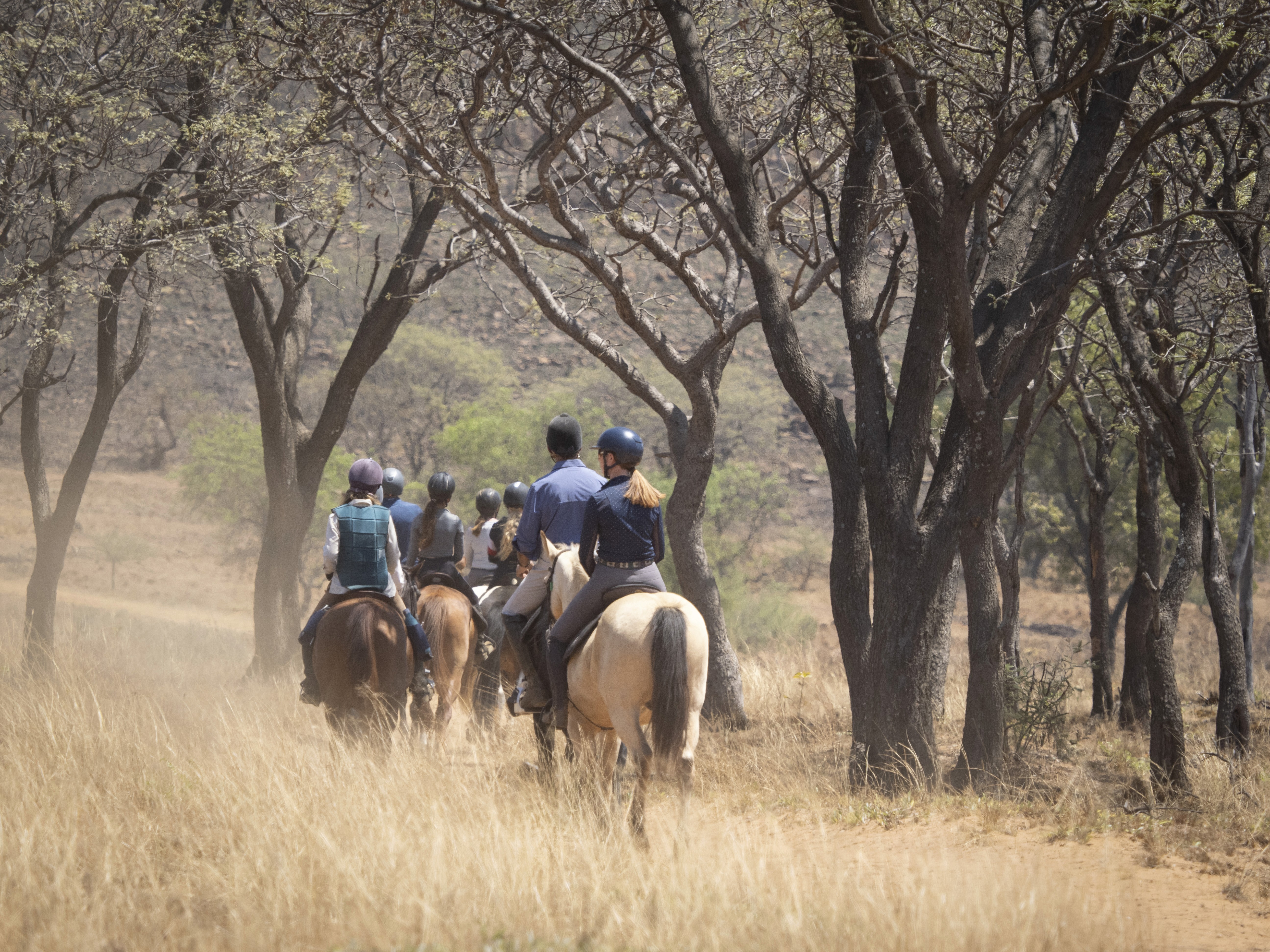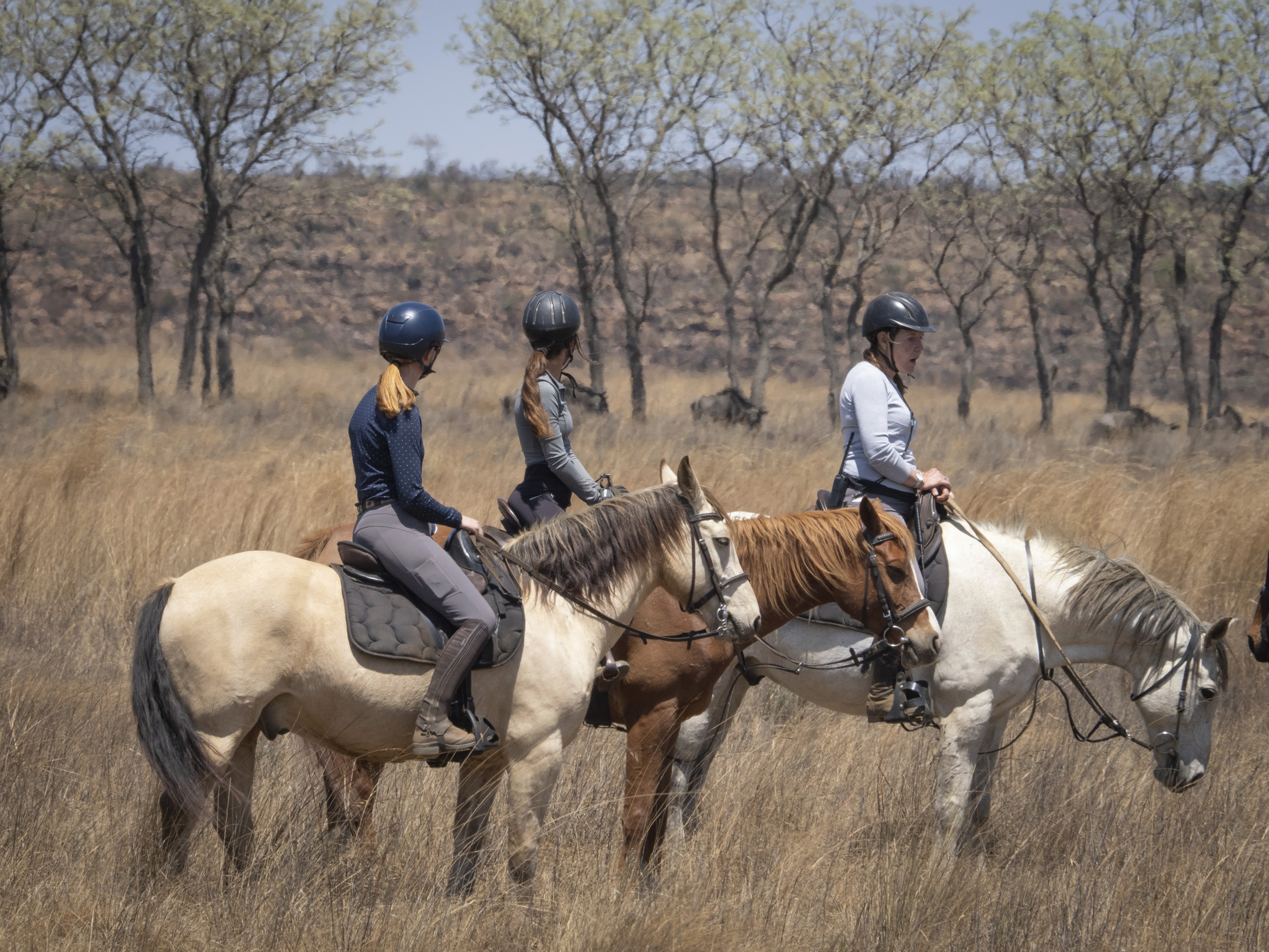 En dag på Wild Ride börjar vanligtvis med frukost tillagad av personalen, den är enkel men vällagad och innehåller bl.a. gröt, yoghurt, frukt, ägg och kaffe. Hästarna utfodras tidigt – ansvaret roterar mellan gästerna – och sedan ansvarar man för att själv grooma och sadla sin häst inför dagens ridpass. Ridningen startar vanligtvis under förmiddagen och sker i små grupper, anpassade efter erfarenhet och tempo. Ofta rider man en längre tur per dag, vanligtvis runt fyra timmar, men ibland längre vid heldagsturer med picknick i bushen. Landskapet varierar ständigt – öppna savanner, kullar, klippformationer, flodsträckor och stora vattenhål – och tempot anpassas efter väder och grupp. Under varmare perioder planeras ridningen därefter och vissa dagar avslutas med barbackabad i någon av reservatets tre dammar. Efter ridningen finns tid för återhämtning – vila vid poolen, läsa, ta en tupplur eller följa med på en promenad i närområdet. Lunch är informell och tillagas av gästerna själva med det som finns tillgängligt – ofta rester från kvällen innan, smörgåsar, ägg eller enklare rätter. Dagarna är luftiga och flexibla. Under kvällen samlas man igen i camp, där middagen serveras. Den består vanligtvis av hemlagad, näringsrik mat med fokus på variation och bra råvaror tillagad. Efter middagen kan du varva ned vid elden, prata igenom dagens ridning eller gå tidigt till sängs – dagarna i sadeln är långa och energikrävande. Vissa kvällar, när väder och månfas tillåter, erbjuds fullmåneritter, något som endast är möjligt i reservat utan Big Five. Utöver ridningen finns flera andra aktiviteter för den som vill varva ner eller ta en paus från sadeln. I reservatet erbjuds vandringar och naturpromenader och det är möjligt att följa med på town trips för inköp eller ärenden. För den som stannar längre finns möjlighet till 2–3 nätters utflykt till Kruger National Park med game drives, nationalparksbesök och upplevelser med elefant och flodhästar. Alla utflykter organiseras med säkerhet i fokus och leds av erfarna lokala partners.